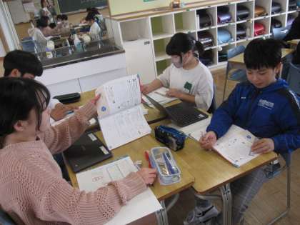 6年生 授業風景 公開日 2024/04/23 更新日 2024/04/23 活動の様子 算数で点対称な図形の性質を調べていました。点対称の図形をかくのは、線対称よりもちょっと難しそうです。今日の学習をしっかり家で復習しましょう。