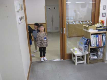 毎朝、職員室に係の子供が健康観察版とこども会ファイルを取りに来ます。1年生も上手に言えるようになりました。