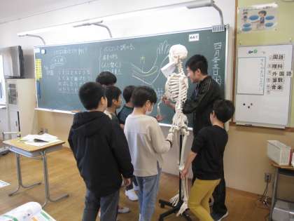 4年生 授業風景 公開日 2024/04/25 更新日 2024/04/25 活動の様子 理科では「動物の体のしくみ」を学習しています。腕がどのような仕組みで曲げたり伸ばしたりしているのか調べていました。