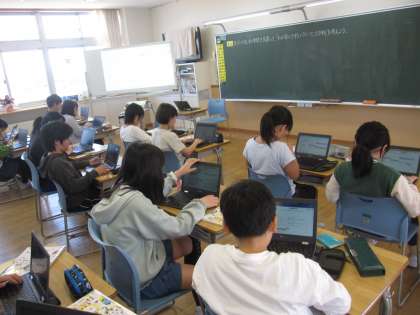 家庭科では、自分の生活時間について見直しています。「わが家のきずなパワーアップ作戦」についてクロムブックに考えを入力していました。連休中は家族と過ごす時間が増えるといいですね。