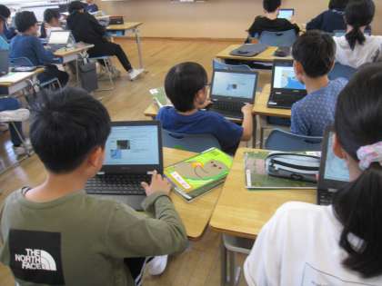 理科の時間です。気象情報を見て、天気の変化のきまりを見つけています。クロムブックを使ってまとめていました。ゴールデンウィークの天気はどうでしょうか?