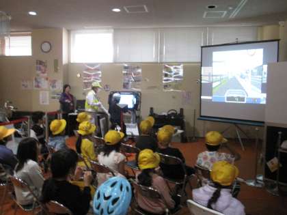 館内では、指導員の方より自転車の正しい乗り方についてお話を聞きました。しっかりと分かっているかテストもありました。時間に余裕があったので、シミュレーションで学習したことを確認しました。