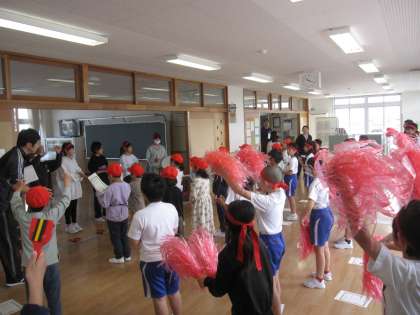 今日ののびのびタイムは各団に分かれて応援練習を行いました。各団の応援の声が響いていました。