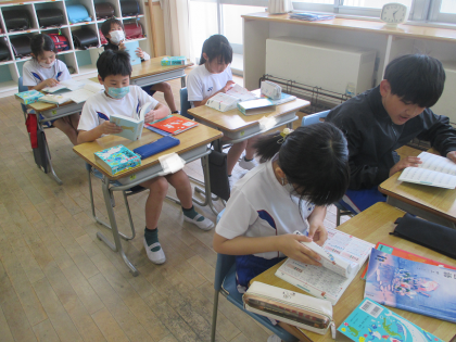 今日は漢字辞典を使って学習しました。辞典にはどんなことが載っているか調べました。