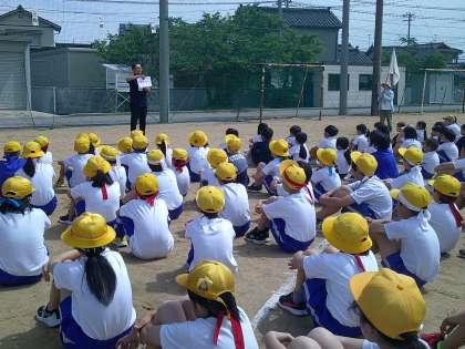 避難訓練がありました。グラウンドに避難するのは今年度初めてです。「おはしも」の約束を確認しました。