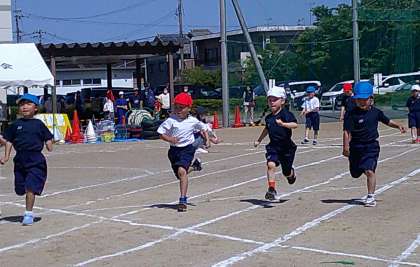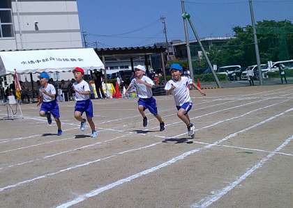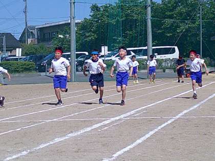 1・2年生は、50m走、3〜6年生は、80m走を走りました。どの学年も全力で最後まで走り切っていました。
