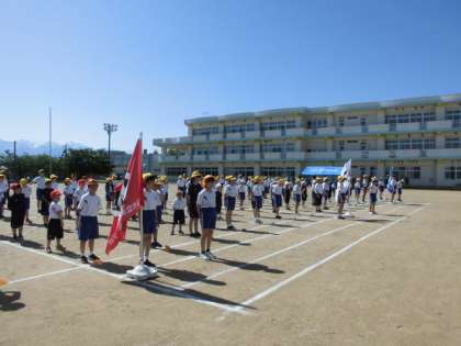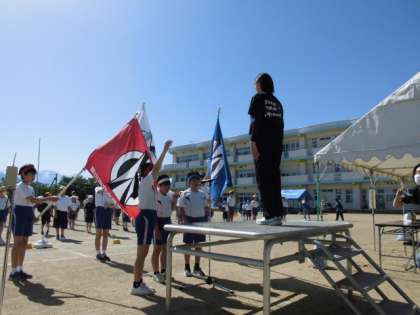 青空の下、令和6年度運動会が始まりました。各団長による選手宣誓です。