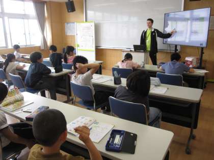 ALTとの外国語活動の時間です。各国の天気について、英語のリスニングをしていました。