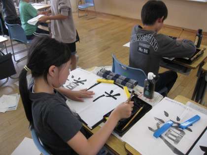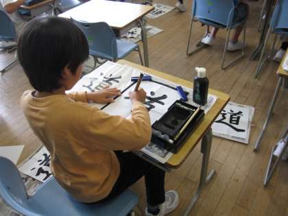 書写の時間です。「道」の文字を清書しています。しんにょうの形に気を付けて書いていました。