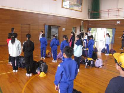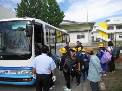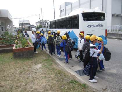 6年生が立山青少年自然の家へ宿泊学習に出発しました。学校とは違う場所で、「自分で考え判断し行動する姿」が見られることを期待しています。けがをせず、安全に過ごし、楽しい思い出をつくってきてください。