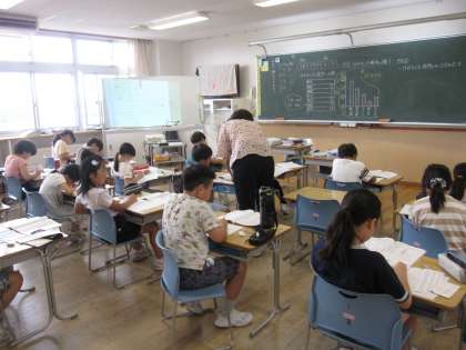 算数「記ろくを整理して調べよう」の学習です。表やグラフにして分かりやすく表す方法を学んでいました。