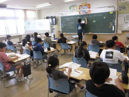 算数「小数のしくみを調べよう」の学習です。小数を10倍、100倍すると、また10分の1、100分の1にすると位がどのように変わるか考えていました。