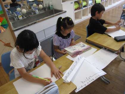 学級活動の時間、係に分かれて活動しています。写真はクイズ係の様子です。