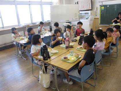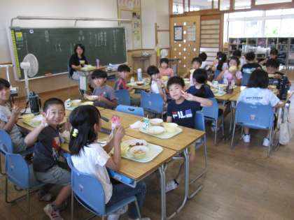 暑さに負けないためにも残さず食べています。3年生の様子です。