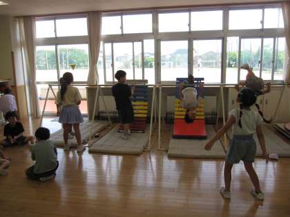 学校に着くと、さっそく鉄棒で遊ぶ2年生でした。