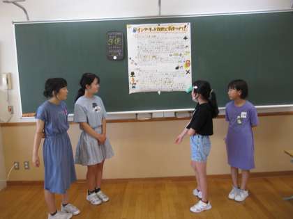 国語「デジタル機器と私たち」の学習で提案文をグループごとに書いていました。発表する練習もしていました。ぜひ他の学年の人にも提案したいですね。