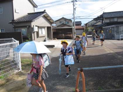 暑さ対策として日傘(雨傘も)もOKです。ランドセルの代わりにリュックを使用してもよいですし、ネッククーラーなどで工夫している子供たちもいます。1学期もあとわずかとなりましたが、熱中症に気を付けて登下校できるようご配慮よろしくお願いいたします。