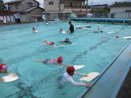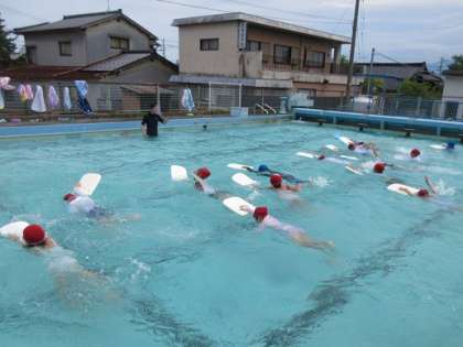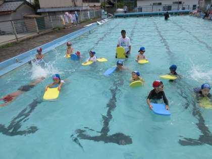 今日が、1学期最後の水泳学習でした。最初の頃は、プールの底に足が着くまで、はらはらしていた子供たちでしたが、延べ7回の水泳学習で、できることがたくさん増えました。水が恐かった子供が、しっかり潜れるようになったり、浮けるようになったりしました。また、ビート板を使ってクロールの練習もできました。息つぎに挑戦した子供もいます。