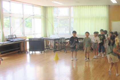 7月と8月の誕生日の人のお祝いをしました。集会では、スポーツ係が大縄の遊びを紹介したり、宝探しゲームをしたりして、クラスのめあてである「なかよく」楽しむことができていました。