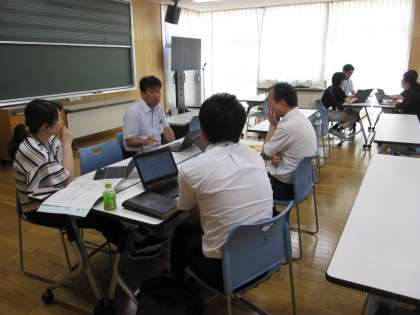 水橋中、水橋西部小、水橋東部小、水橋中部小の先生方が本校に集まり研修会を開きました。水橋学園は義務教育学校なので、小・中学校の先生方が一緒に勤務します。グループに分かれ、学力向上や授業改善の取組、水橋学園に向けて準備しておくことなど情報交換しました。