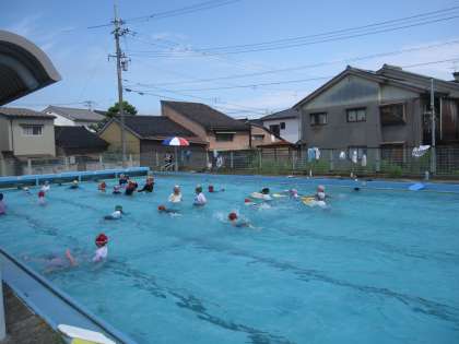 本日がプール開放最終日でした。35名の子供たちが楽しそうに泳いだり遊んだりしていました。