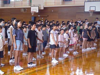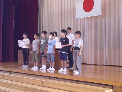校長先生からは2学期も「自分の頭で考えて判断し行動すること」「友達のよさをたくさん見つけよう」というお話がありました。また、始業式の後に受賞伝達がありました。