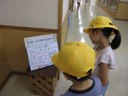 2学期から校長室前に「お知らせボード」が登場しました。その日の予定やミニ知識をお知らせします。今週はなぞなぞが書いてあるので通るたびに考えています。