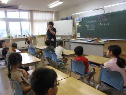 生活科で秋について話し合っていました。「涼しくなってきた」「台風がやってくる」「こおろぎの鳴き声が聞こえる」など気付いたことを発表していました。これからもっと秋の深まりを感じてほしいですね。