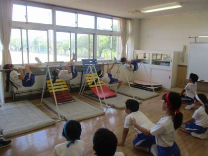 3年生は体育の時間に鉄棒運動をがんばっています。鉄棒の持ち方に気を付けて、しっかり体を支えながら、いろいろな技に挑戦しています。休み時間に練習している子どももいます。「できるようになりたい」という前向きな気持ちが素敵です。