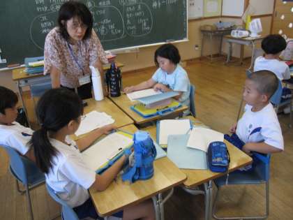 総合的な学習「大成のすてきをみつけよう」では、校区を調べています。明日はみんなで水神社などに行きます。どんなことを知りたいのかグループで話し合っていました。