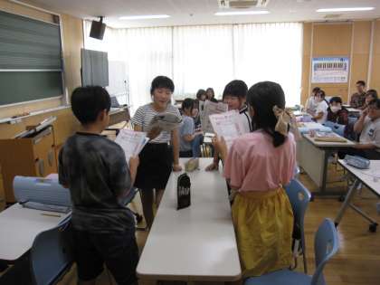 音楽で「ボイスアンサンブル」に挑戦していました。声の響きが重なっておもしろそうです。