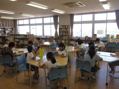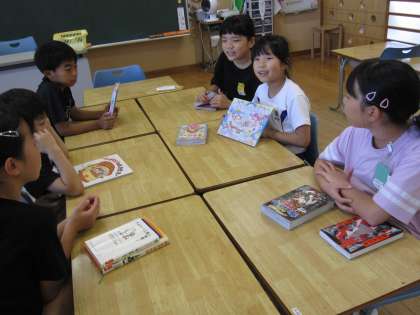 2学期最初のファミリー読書です。各自が読んでいる本の紹介を行いました。これを機会に読む本の種類が広がるといいですね。