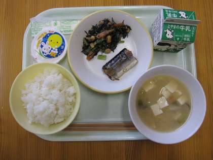 9月11日(水)の給食 公開日 2024/09/11 更新日 2024/09/11 学校からのお知らせ 今日の給食は、ごはん、牛乳、さんまの生姜味、大豆とひじきのごま和え、だんご汁、お月見ゼリーです。今日はお月見献立でした。
