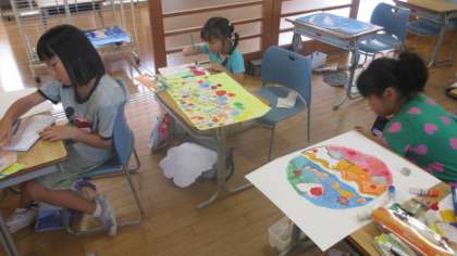 図画工作科「ふしぎなたまご」では、たまごから何が出てくるのかを想像し、楽しみながら絵に表しています。