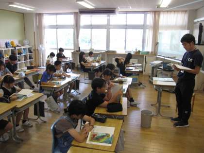 国語では下の教科書に進んでいます。「ごんぎつね」の物語の範読を静かに聴いていました。多くの人が教科書で学習してきた教材です。