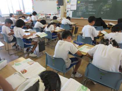 今日は、道徳で「みんなの劇」というお話を読みました。これは、学習発表会に向けて練習する5年生のお話で、今の子供たちの様子と重なるところがたくさんあるお話でした。子供たちは「みんなの取り組みをよりよくするために大切なこと」について考え、今の自分たちの姿と比べて読んでいました。