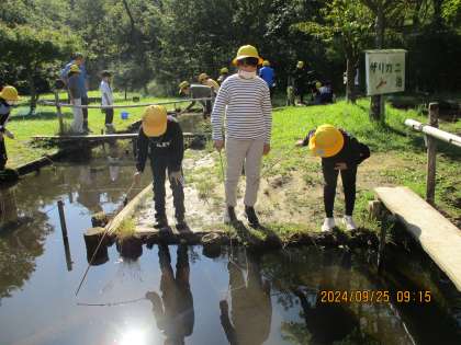4・5年宿泊学習 2日目 ザリガニ釣り・バンブーチャレンジ