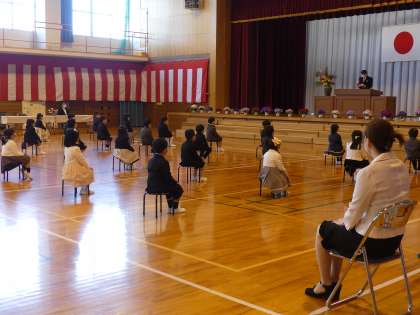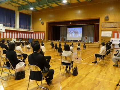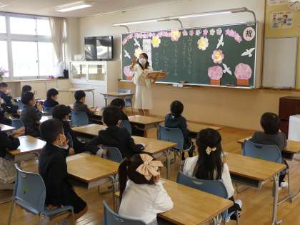 元気な28名の1年生が水橋中部小学校に入学しました。残念ながら在校生の参加はありませんでしたが、1年生は6年生からの温かいビデオメッセージをきらきらした目で見ていました。また、教室では担任の先生のお話をしっかりと聞いて学校生活のお約束をしていました。
