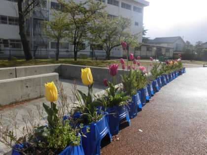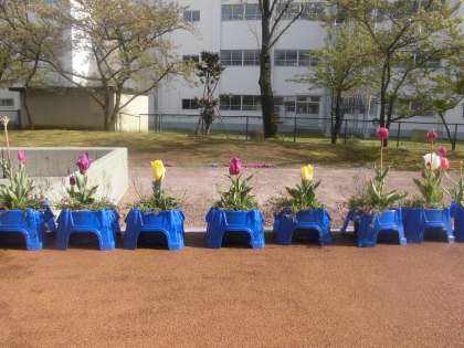 2年生が1年生の2学期に植えたチューリップがきれいな花を咲かせています。