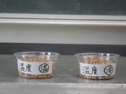 5年生の理科の学習では、どのような条件で植物(種子)が発芽するのかを調べるために、比較実験を3つ行います。楞川先生(理科の先生)と一緒に3種類の種(トウモロコシ、ダイズ、イネ)を育てていくので、この後どうなるのか楽しみにしていてください。