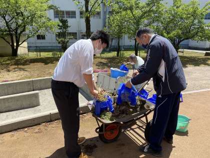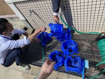 天気がよかったのでチューリップにつかっていたはちをそうじしました。