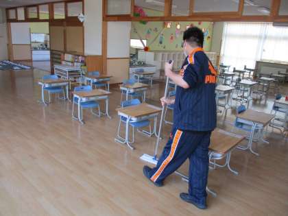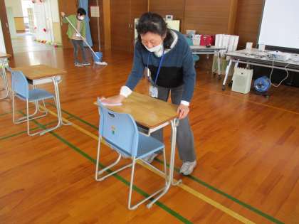 本日、全職員で5月25日(月)の登校日に向けて校舎内の消毒作業を行いました。