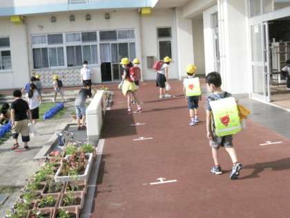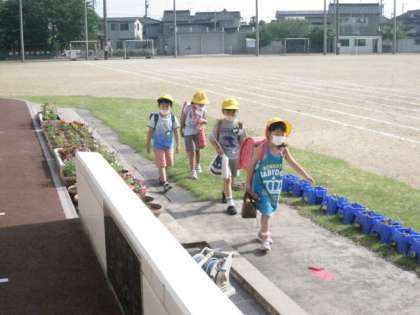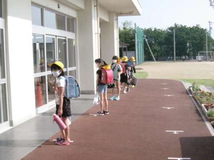 朝から快晴。今日も気温が高くなりそうです。児童は元気に登校しています。ソーシャルディスタンスに気をつけて!