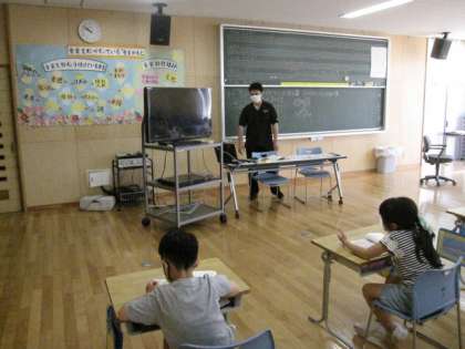 遊園地で友達を探しています。先生が「何が大事だろう」と児童に投げかけました。