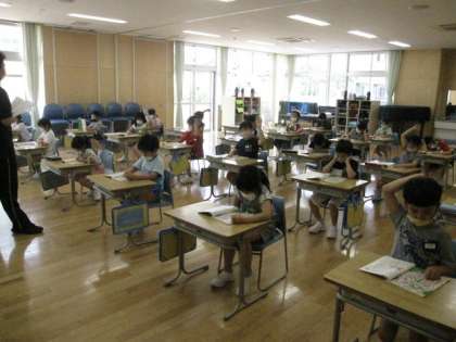 児童は「はっきりとわかるから(服装の色等)」とか男か女かも大事な情報と答えていました。また、最終的には、名前がわかると放送で呼びかけられる。との意見も。