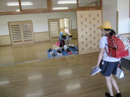 6年生の新しい下足置き場です。 下の2枚の写真は、5年生の児童玄関の様子です。