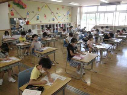 ひらがなの「あ」と「う」を練習しました。字の形に気を付けて、丁寧に書きました!