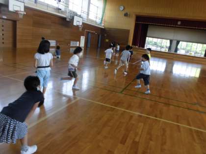 今日は、初めて体育館で遊びました。友達と仲良く遊ぶことができ、「楽しかった〜!」と大満足の子供たちでした。