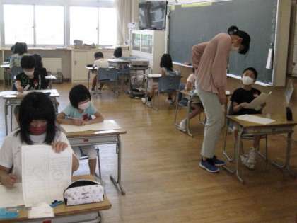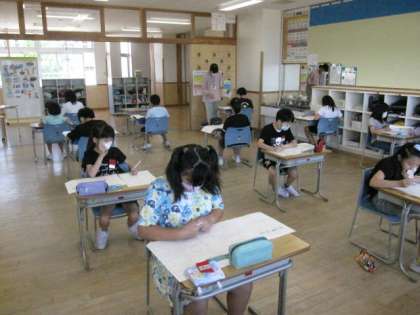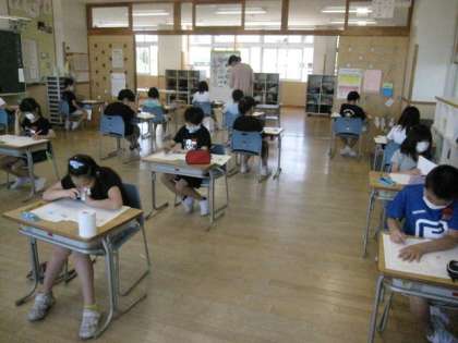 算数のテストでした。みんな真剣に問題に取り組みました!
