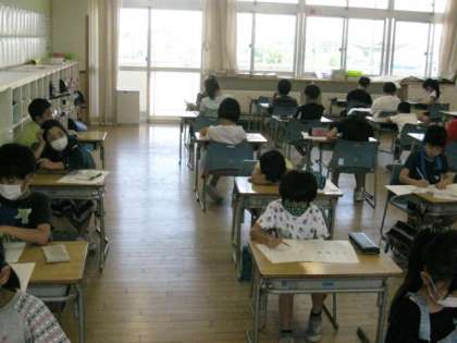 3年生は、国語のテストでした。みんな学習の成果が、出ましたか?